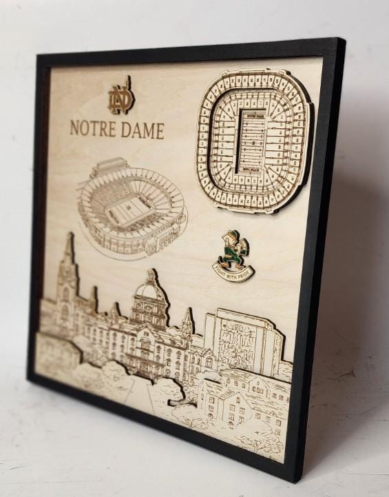 Celebrate your passion for Notre Dame football with this detailed Stadium wall art, capturing the iconic campus of Notre Dame as shown in the vibrant listing image. This authentic sports fan decor is a unique way to bring the energy and pride of Notre Dame's legendary football culture into your space.
