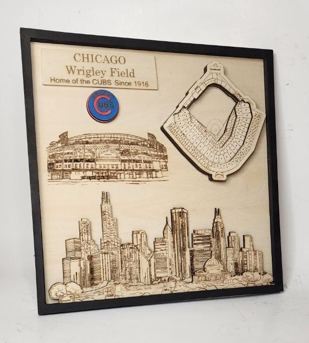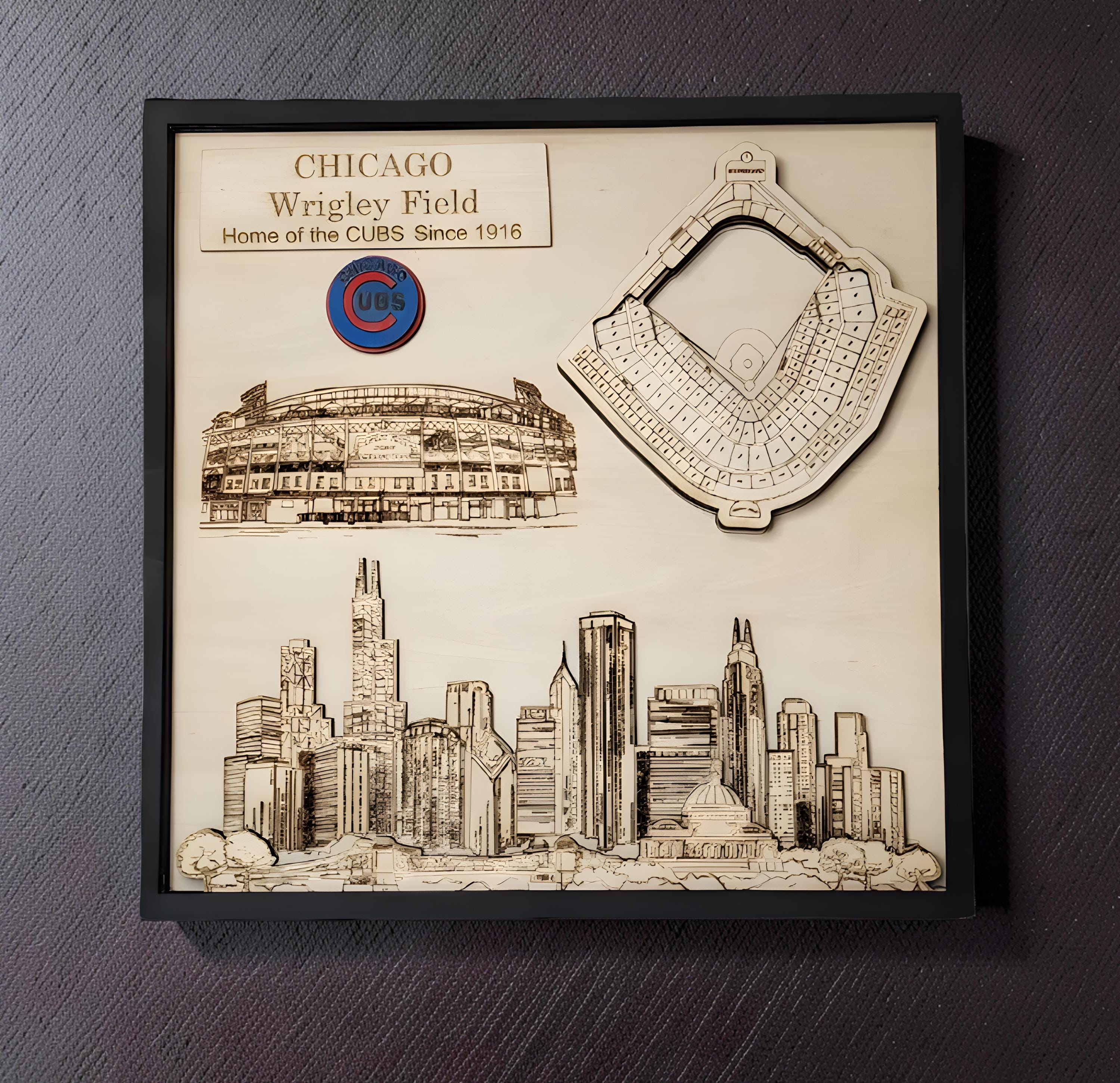Celebrate your passion for the Chicago CUBS Baseball with this detailed Wrigley Field stadium wall art, capturing the iconic home of the CUBS as shown in the vibrant listing image. This authentic sports fan decor is a unique way to bring the energy and pride of Chicago's legendary baseball culture into your space.
